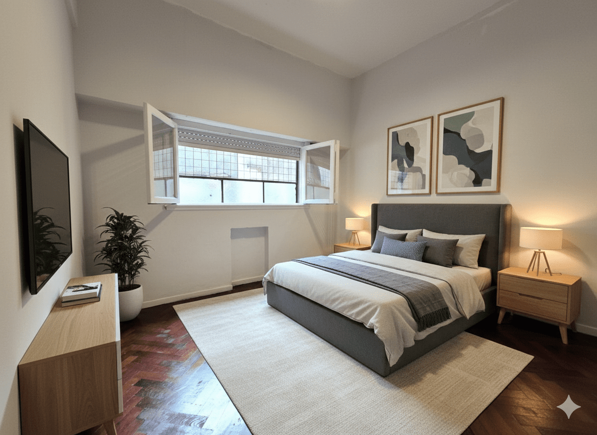 La propiedad cuenta con dos dormitorios amplios más una dependencia de servicio que puede funcionar perfectamente como un tercer dormitorio o un cómodo home office. Se encuentra en un segundo piso por escalera, lo que garantiza tranquilidad y bajas expensas.